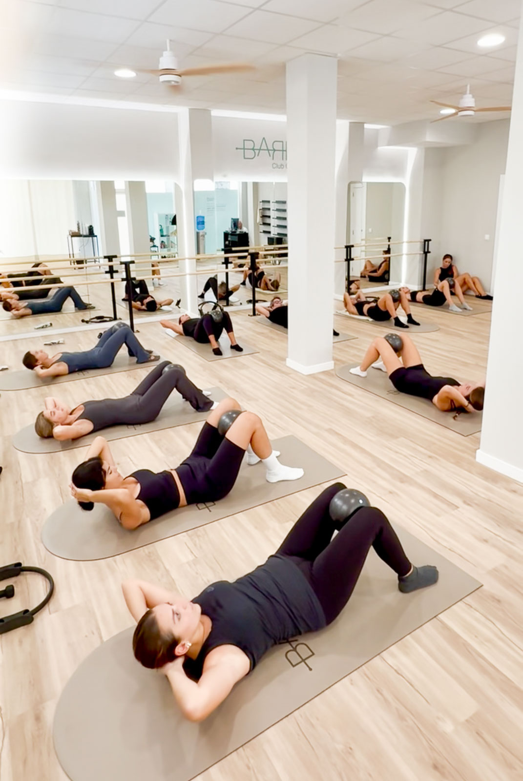 Barre combina ejercicios de ballet, pilates y entrenamiento funcional, trabajando glúteos, abdomen, piernas y brazos de forma equilibrada y elegante.